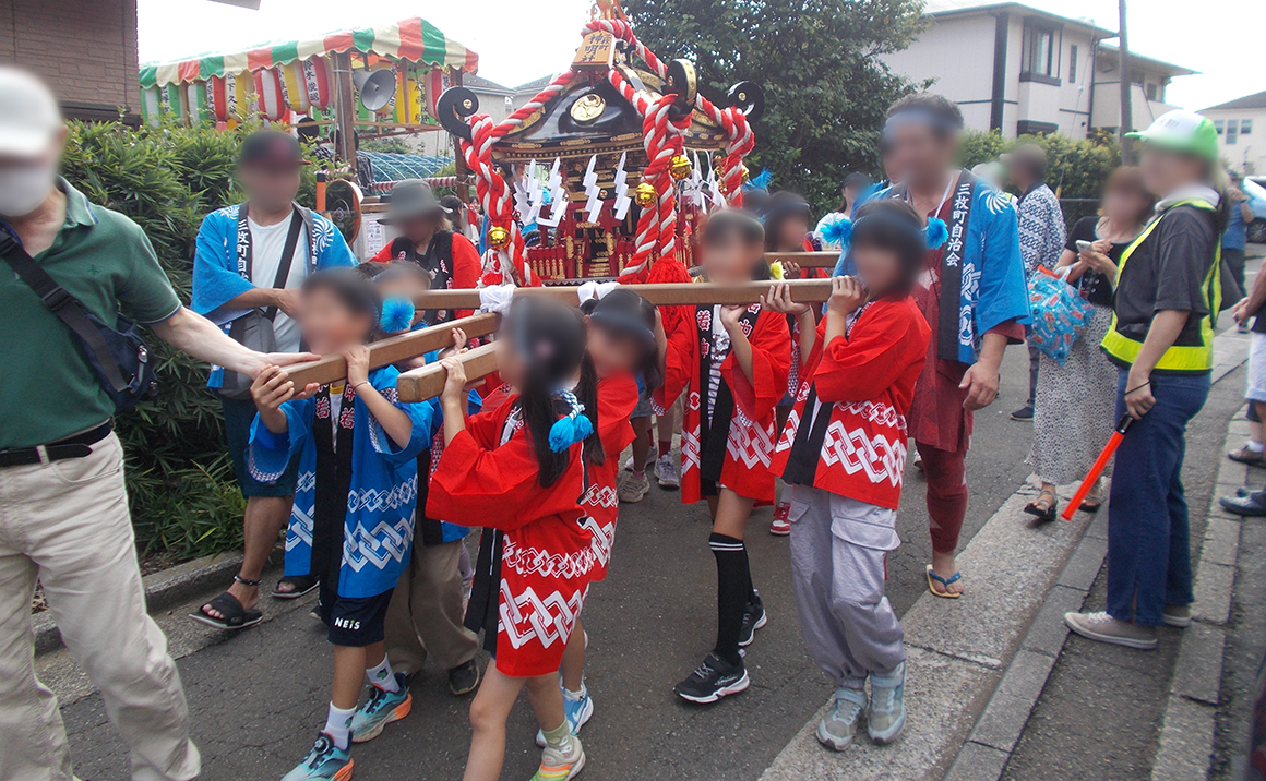 地域の子たちはとても元気で、おみこしを担いでいましたよ!