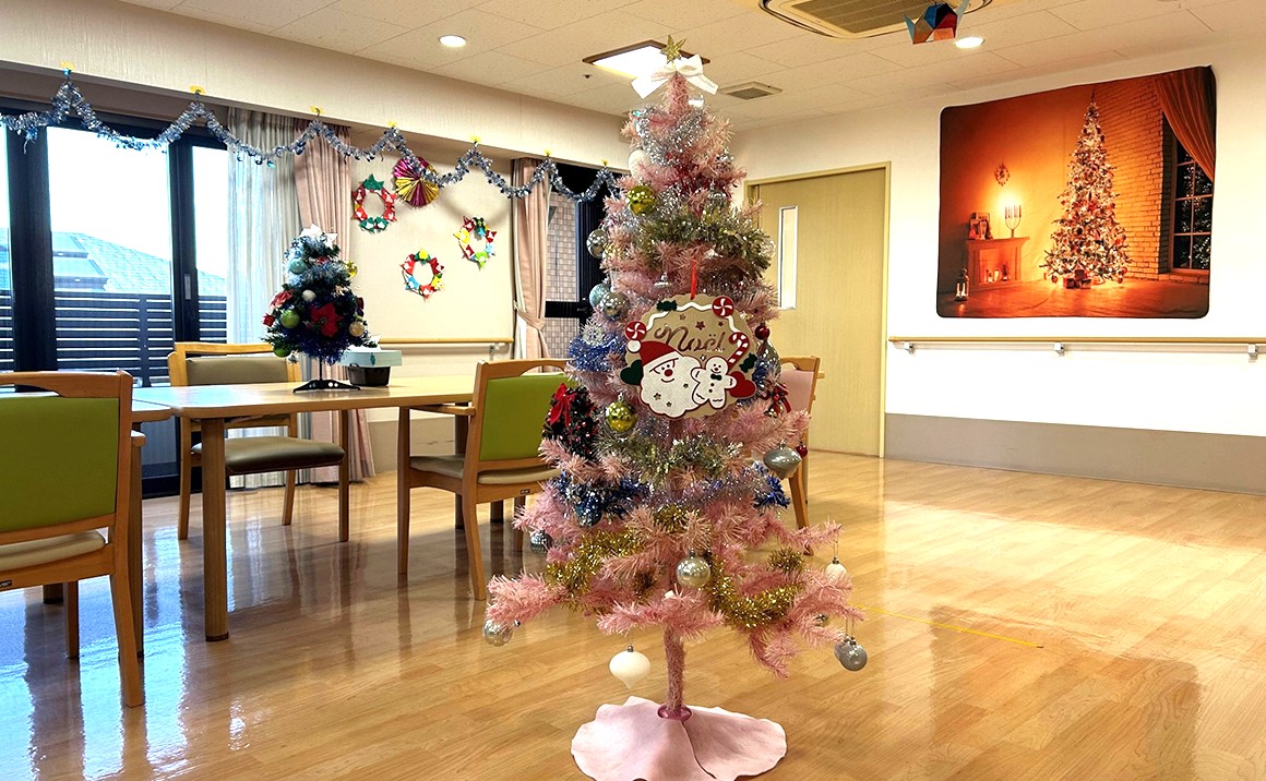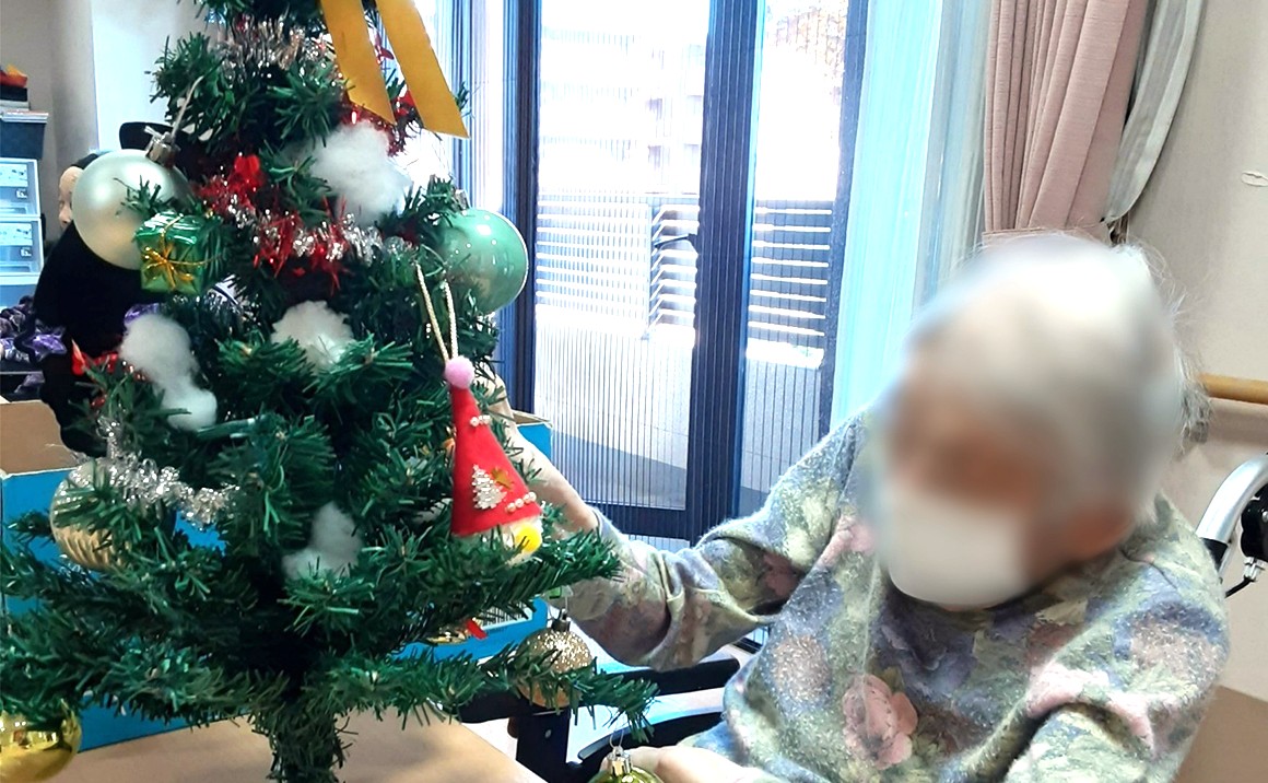 プレザンメゾン八王子高倉では、 3階のフロアリビングにクリスマスツリーを飾りました。 ご利用者様にオーナメントやガーランドなどを飾って頂き、 気分はすっかりクリスマスモードに!?