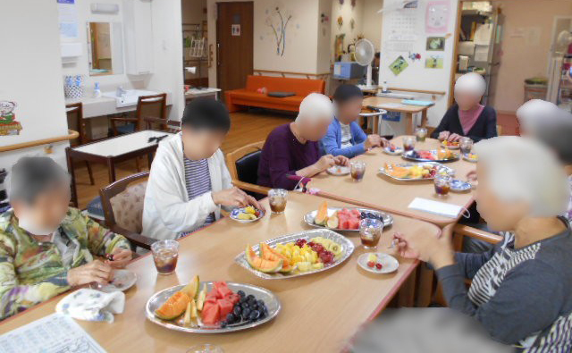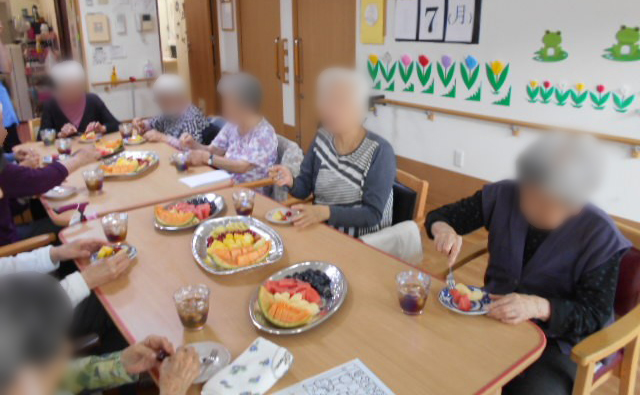 7月7日 彦星と織姫が再開できる日なのに・・・曇り空 会えるといいね(⋈◍>◡<◍)。✧♡天の川見たいね☆彡 七夕にちなんで星形に切ったのフルーツを作りフルーツパーティーを楽しみました。 が、出来あがりは違う形でした(笑)皆さんで作ったフルーツを沢山頂きました。幸♡