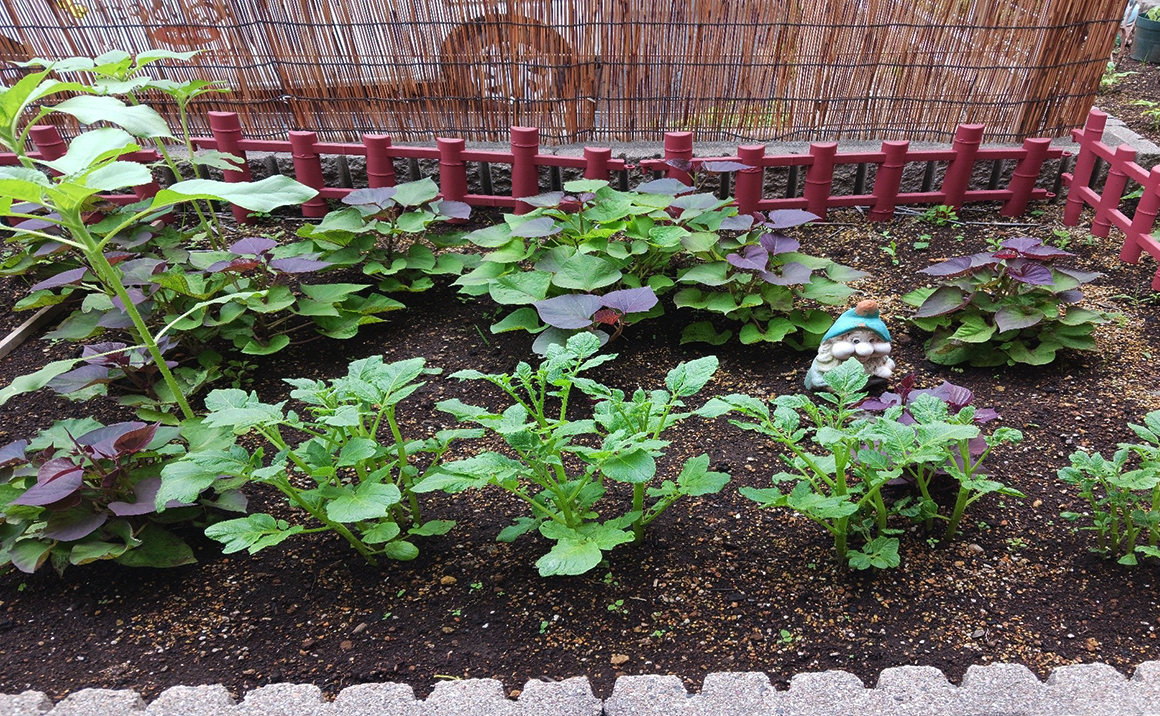 6月になり花壇に植えた、花や野菜が大きく育ってきてます。 ヒマワリやピーマン、ズッキーニを今年の夏の収穫を目指し、皆様で育てています。 又、秋の芋ほりに向けてサツマイモとジャガイモも植えてます。 「早く食べたいね」と収穫できる日をいまかいまかと楽しみに待っています。