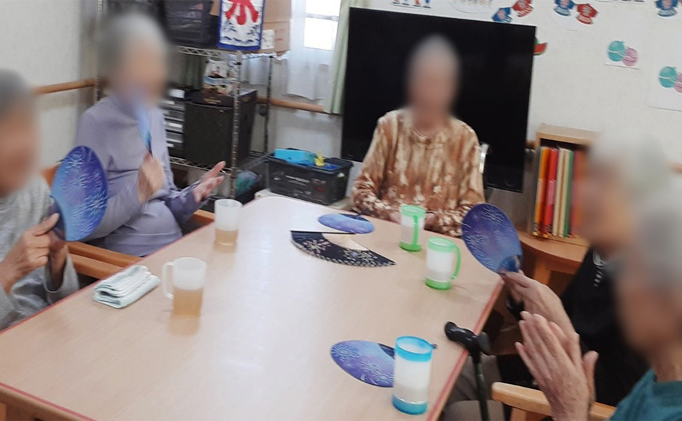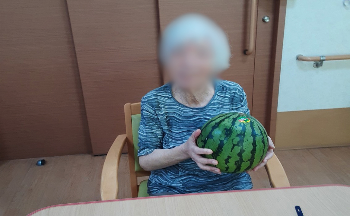 8月は1,2階合同で夏祭りを行いました。 ボーリング倒し、金魚すくいに挑戦しました。 雰囲気作りで、東京音頭を流していたのですが、何方かが口ずさむと、一人二人と唄われ… 最後には皆で手拍子、内輪、扇子を持ちながら大合唱となりました! おやつは大きなスイカを召し上がりました。