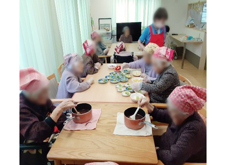 1・2階合同でチョコレートフォンデュパーティーを開催しました。 たのしい家荒川には、殿方がお二人。バレンタインデーの素敵な一日を過ごして頂くために 女性陣は準備に大わらわ!チョコレートを溶かしで照りが出るまでよくかき混ぜる、フルーツカット・平等に小分け等ワイワイガヤガヤで準備完了。 殿方お二人を迎えパーティ始まり。「だいすきー」と💛を投げかけた後はフォンデュしながら談笑へ。 とても愛ある一日でした。