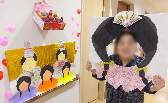 手作り満載のひな祭りを楽しみました。紙粘土でお雛様作り。 顔は皆様の思い思いの表情を描き、着物はお好きな色で(*^^*) 完成品は「かわいい~!」と抱きしめたりで皆様とても少女のように輝いておられました。