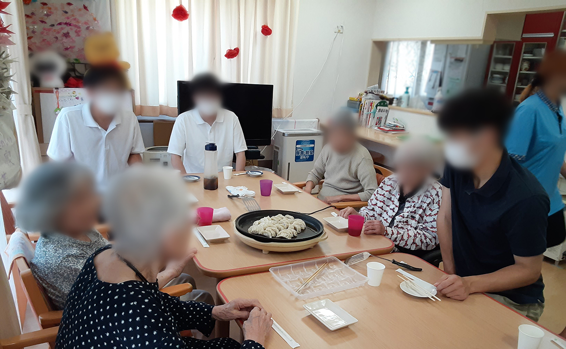 入居者様と一緒に餃子作りやかるた等のレクリエーションを一緒におこないました。