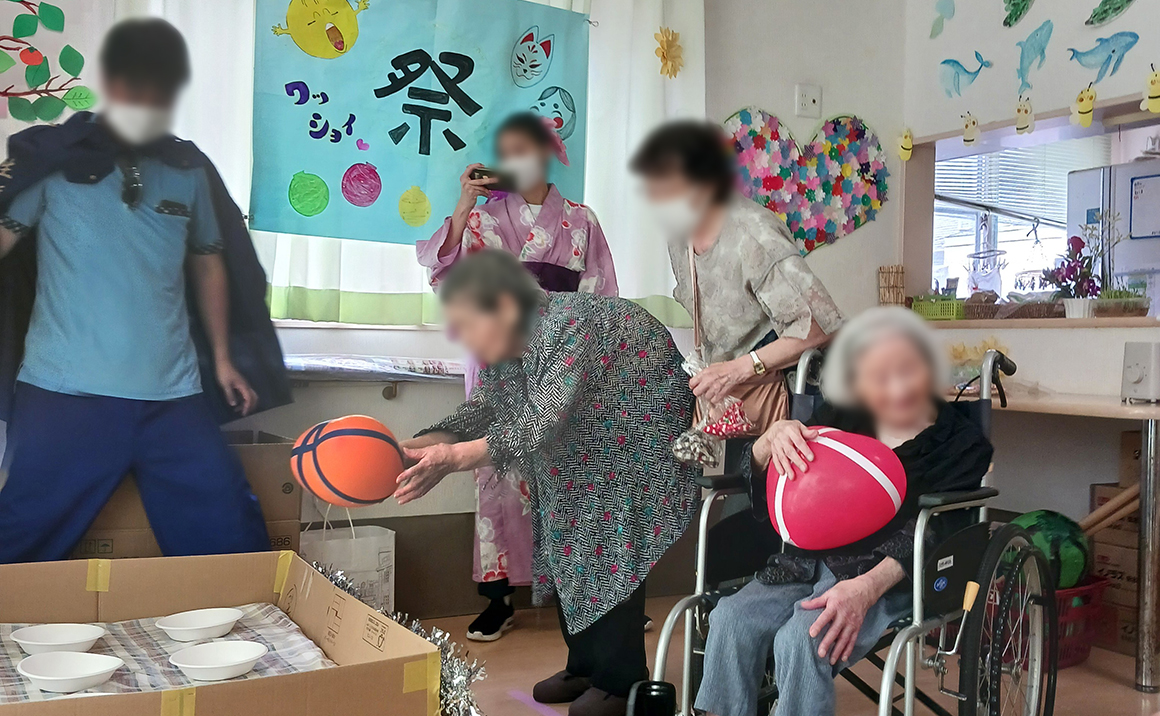 9月21日ご家族様をお招きして納涼祭を開催しました。 食事を楽しみながらの職員の出し物や全員参加のじゃんけん大会・射的や輪投げ等のゲームを実施させていただきました。 ご家族様も入居者様もとても楽しそうでした。 ご家族様からはねぎらいのお言葉や、次のイベントはいつやるの?次回も呼んでください等、嬉しいお言葉をいただきました。