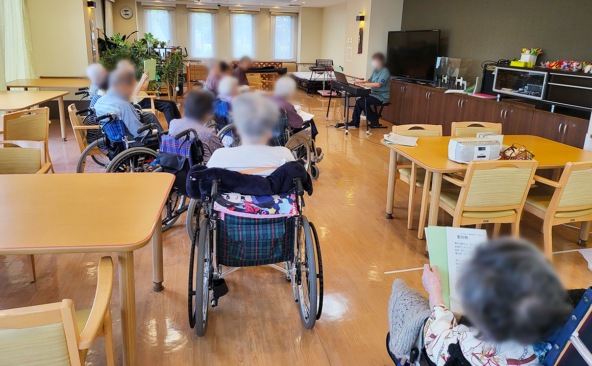 プレザンメゾンさいたま指扇に10月1日付で入職した職員はもと音楽教室の講師です。 そんなわけで早速特技をお披露目。音楽の大好きな入居者様がとても多いので、皆様大盛り上がり。 今後も頻度を増やし、常に音楽と笑顔の絶えない施設にしていきたいと思います。