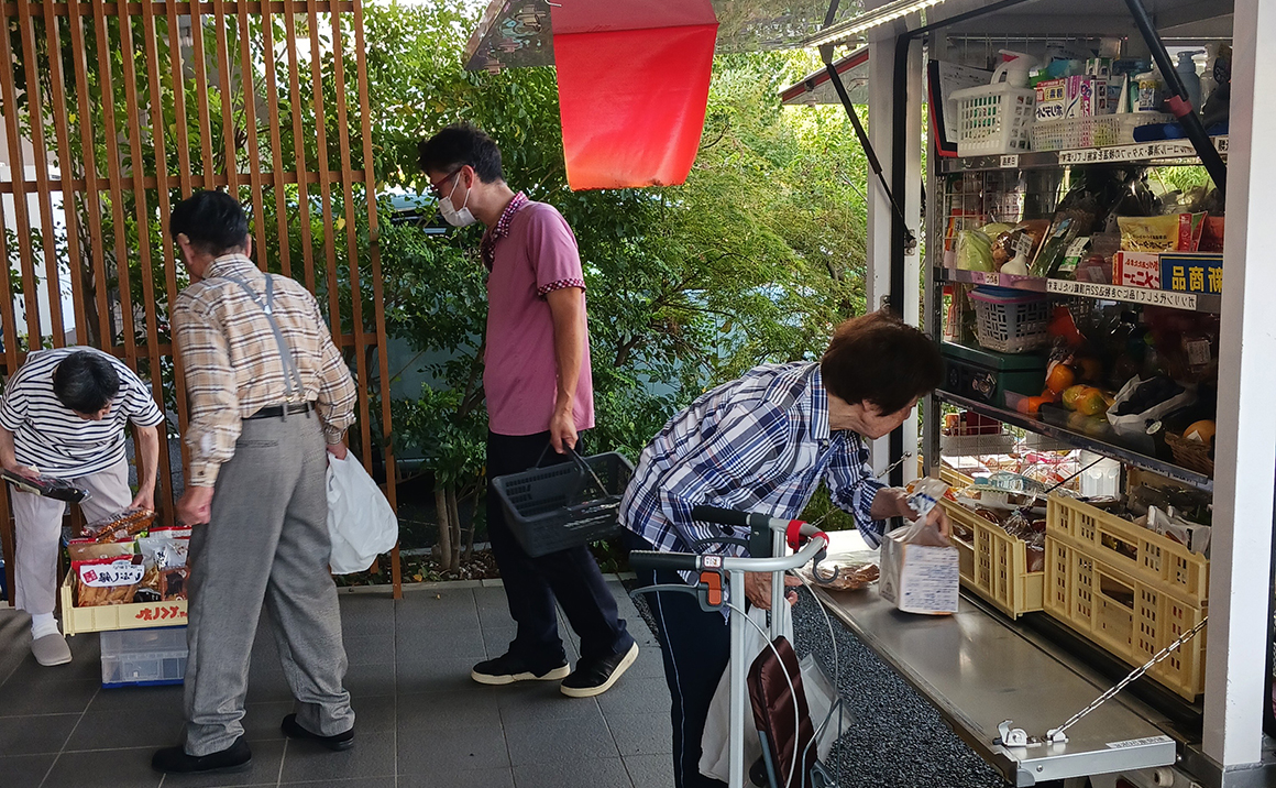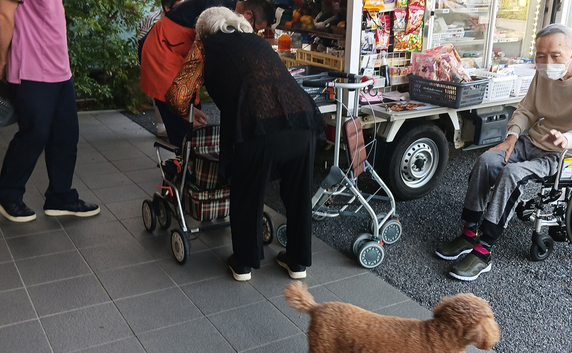 良い気候のとくし丸の日は皆様 外に出てきてお買い物を楽しんで下さいます。