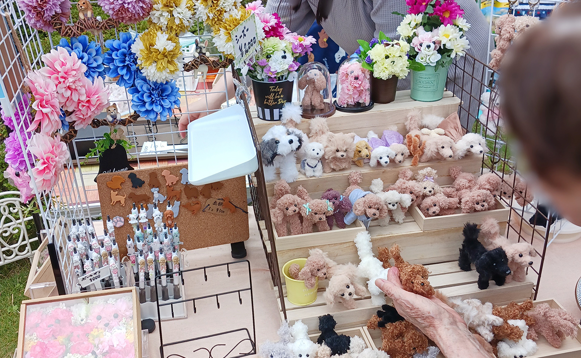 当日は穏やかなお天気でご利用者様も庭に出て来て下さり お店の人やワンちゃんと楽しく過ごされていらっしゃいました。 8店舗のお店と獣医師さんの相談コーナーや ワンちゃんの整体・飼い主さんの整体と様々なコーナーがあり 人の整体ではご利用者様も希望で施術を受けていらっしゃいました。