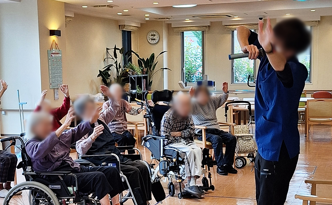 今日はいつものリハビリの先生がみんなでできるリハビリ体操を教えて下さいました。