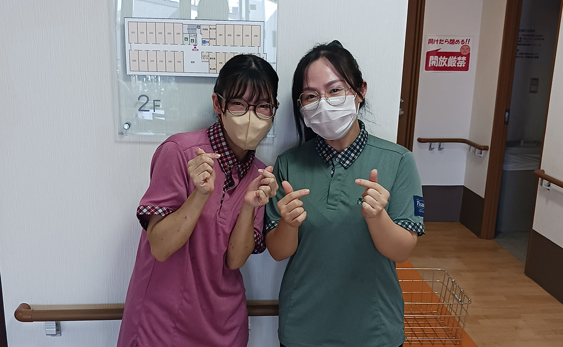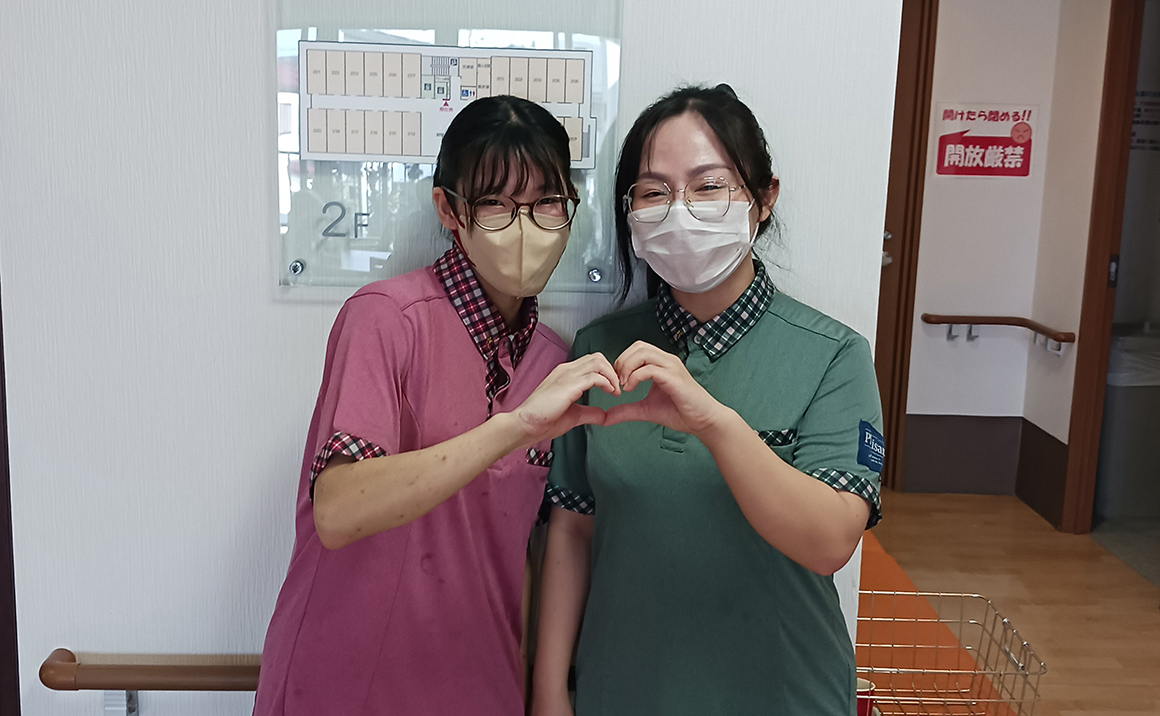 新卒の ツ〇 マ〇ミさん お母さまが福祉の仕事をされている影響もあって 福祉大学卒業後ケア21に入社、40分かけて自転車で通勤です 若いけど気づきもありいつも笑顔で頑張ってくれています。 実習生の グ〇ン 〇イさん ベトナムで医療短期大学卒業後 福祉の勉強の為ケア21に来てくれました 遠い異国で心細いでしょうがいつも笑顔と元気で頑張ってくれています。