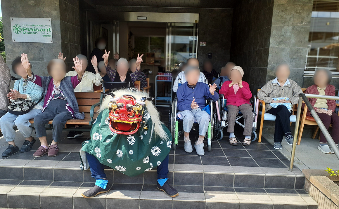 また獅子舞も披露され、無病息災を願い、獅子が入居者様お一人お一人の頭をガブガブと噛んで回る一幕も。