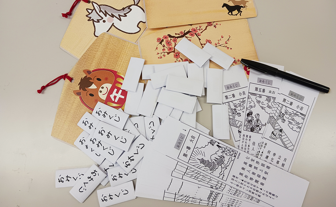 年末からお正月に向けて、ご利用者の皆様と一緒に絵馬やおみくじを手作りしました。