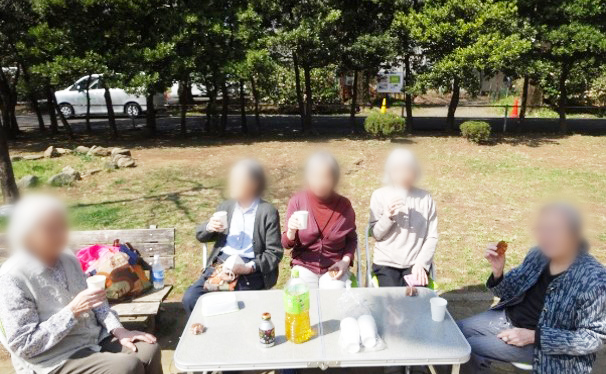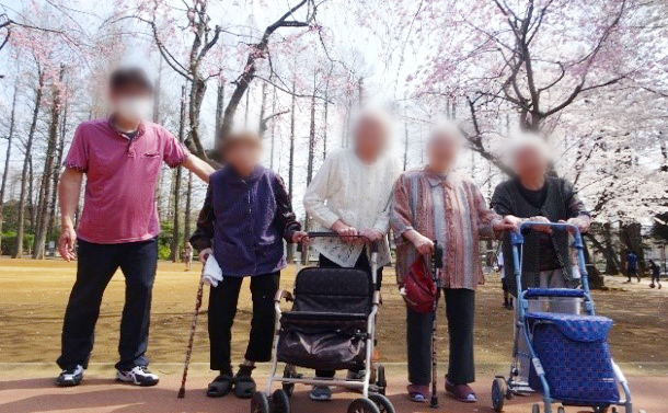 「寒いから行かない」と断った方が 庭の桜吹雪をじーっと見上げていました。 「来年はぜひ!」のお誘いに「はいっ!!」と笑顔に。