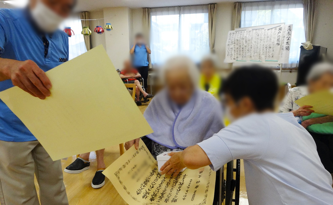 百歳になられたご入居者様には総理大臣名でお祝いが届きました。