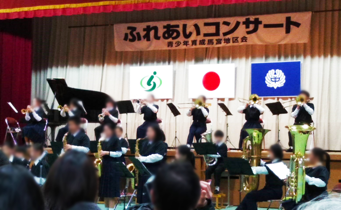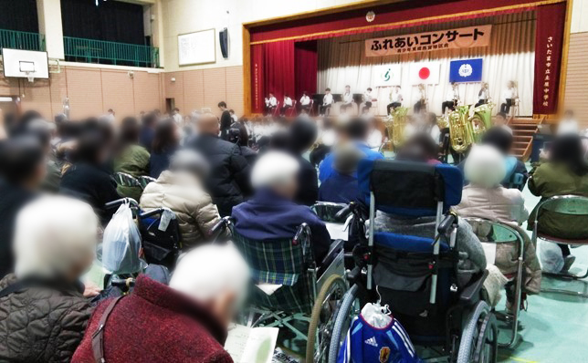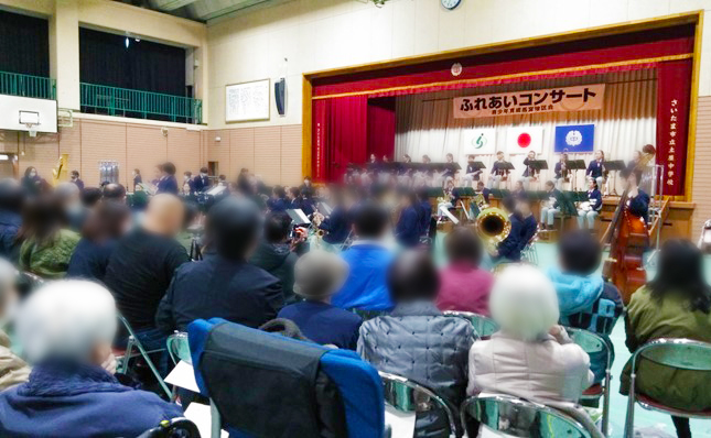 市内の小中高校生が出演する「ふれあいコンサート」にお邪魔しました。 地域の皆様がたくさん見に来られています。 私たちには招待席をご用意していただきました。