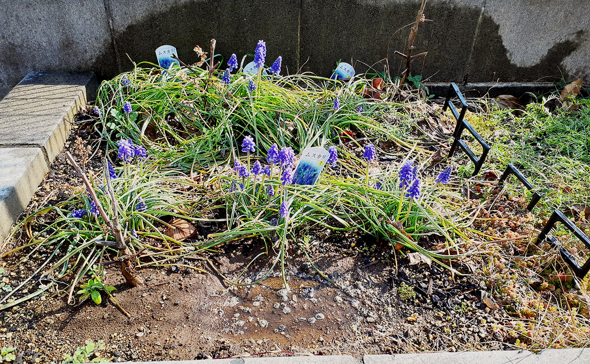 ブドウの房を逆さにしたような小さい花が咲きました🍇 ムスカリです。