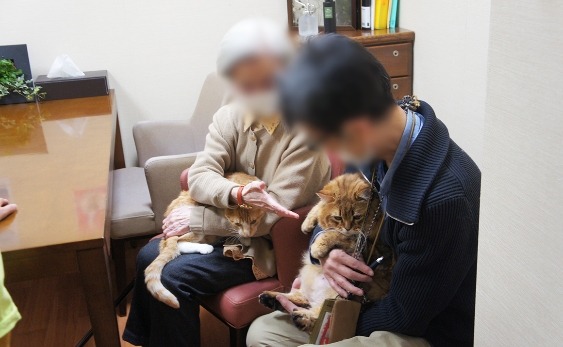 初心者歓迎で抱っこOKな猫ちゃんを抱っこさせてもらいました。入居者さんもスタッフも癒しの時間を過ごさせていただきました。