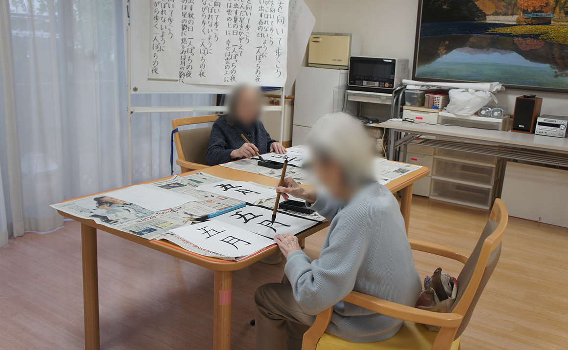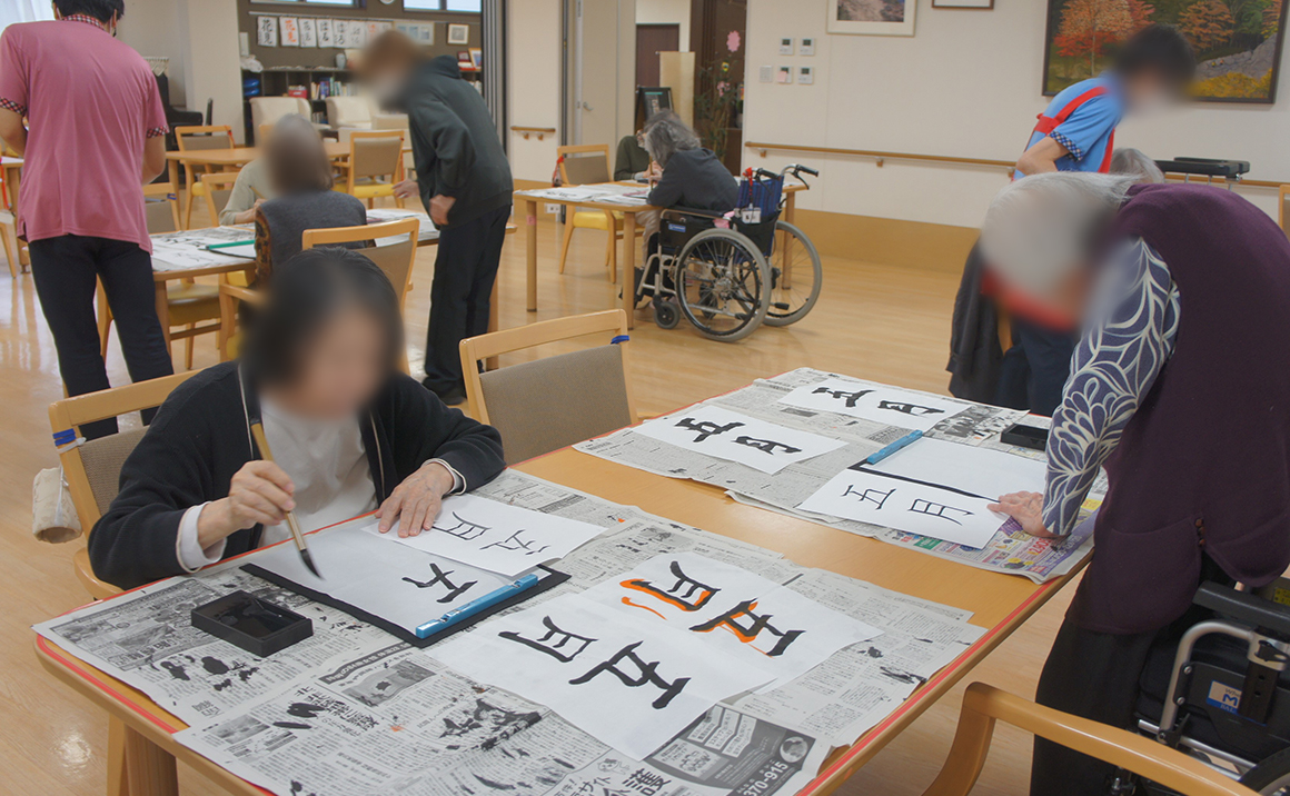 皆さんとてもお上手で入居者様の中には以前書道の先生をされていた方、師範の資格をお持ちの方もいらして