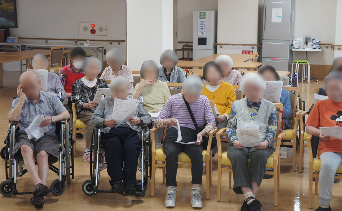 高齢になると段々と衰えていく所もありますので、当施設はコーラス以外でも頭を使う勉強など毎日様々なレクリエーションを導入しております。