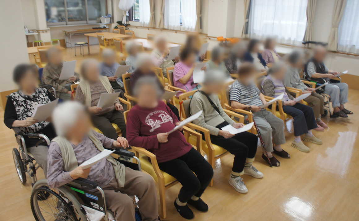 プレザンメゾンさいたま南与野です。 ブログをご覧いただきありがとうございます。 今回のレクリエーションは「コーラス」です。 介護体験の方を一緒にコーラス発表会で歌う新曲「手のひらを太陽に」を練習しました♪ コーラス発表会に向けて皆様で練習し、当日の発表会が楽しみです🎶 発表会の様子などブログでも上げさせていただきますのでご覧頂けばと思います。