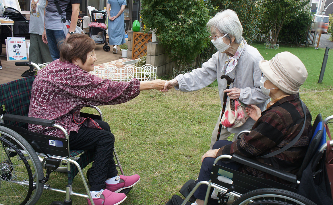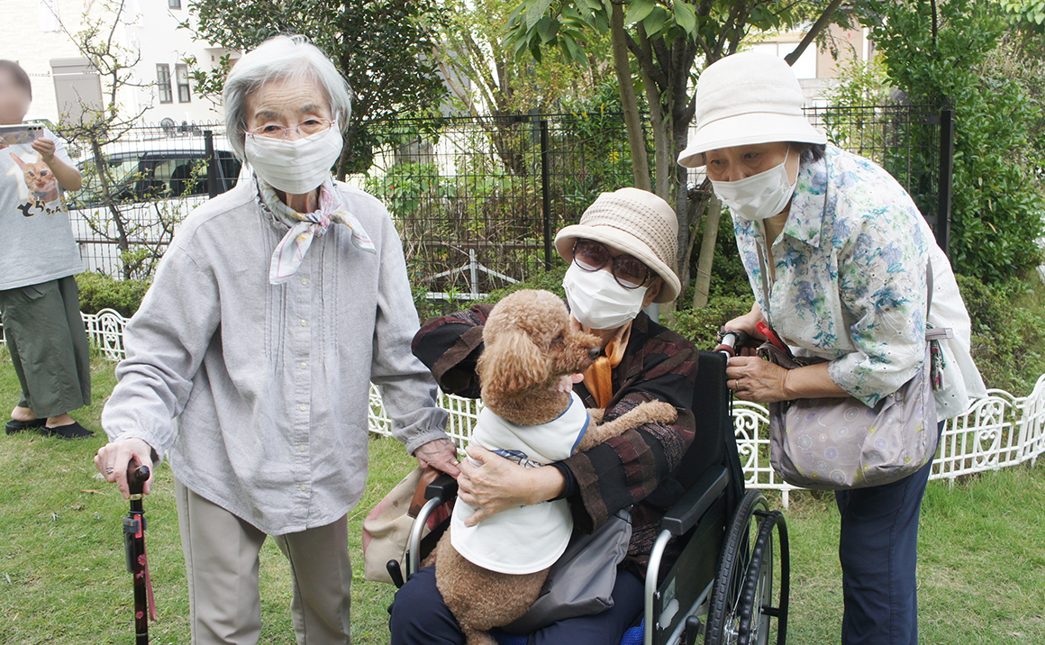 本日は、お隣のプレザンメゾンさいたま指扇で開催していた『いきいきハッピーマルシェ』に参加しました❣ ワンちゃん好きの入居者様と職員で出掛けてきました。 ワンちゃんのハンドメイドのお洋服や小物の販売、ワンちゃんの健康維持に行うスエ―デンマッサージを受けることができたり、 飼い主様の整体体験ができたり、猫ちゃんの譲渡会なども行われていてあっという間の楽しい時間でした。 入居者様達もワンちゃんを撫でて癒されたり、指扇の入居者様との交流も楽しまれていました。 又、機会があったらお出かけしましょうね。