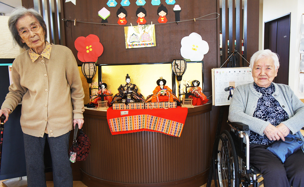 今日、プレザンメゾンさいたま南与野ではひな祭りが行われました! 本日のお昼ご飯は、てまり寿司。プレザンメゾンさいたま南与野ではお食事でも季節を感じて頂きたく厨房の職員さんもいつも頑張ってくれています。 結構ボリュームがあったそうで皆さん『美味しかった~』『おなかいっぱい💛』と大絶賛。 お雛様の前で記念撮影もしました!お雛様みたいに可愛く写真が撮れました。