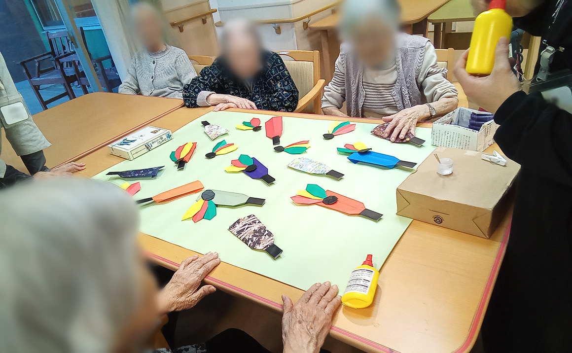 入居者様と職員とでお正月の作品を作成中です。