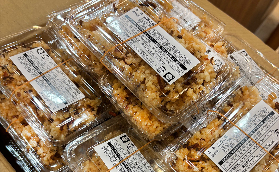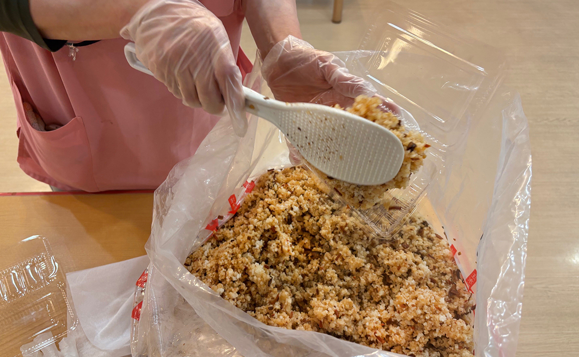 厨房職員さんも合同で訓練を実施しました。 厨房側は水で作り、施設側はお湯で作りました。 水は1時間、お湯は15分で出来るのですよ! 味は美味しいと大好評です!水もお湯も味の違いはありません。 結論…災害時必要なものが話し合えていい時間になりました。
