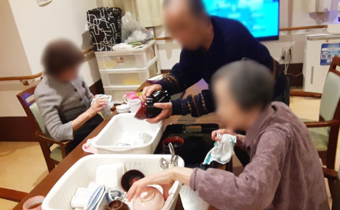 たのしい家中野南台では毎日の生活のなかで体操やうた、家事などを入居者様とともに行い日々の生活をその方らしく過ごしていただいております。