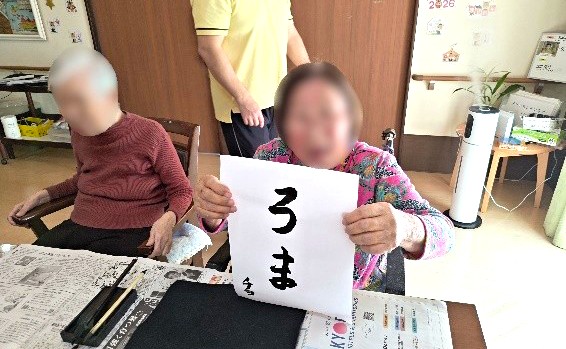 たのしい家宇奈根では年始からおせちの提供と書初めを行いました!
