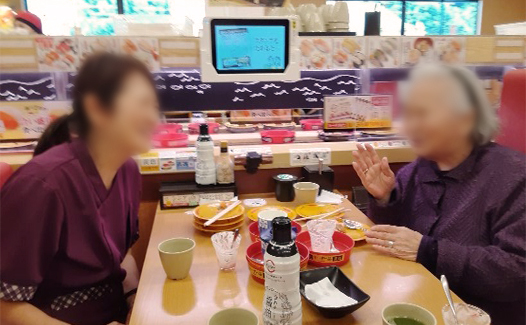 みなさん、こんにちわ!! 外出レクパート②‼ プレザンメゾン習志野実籾事業所近隣にあります「スシロー」さんで「お寿司を食べに行こ~う」企画です。 今回も、回数に分けてですが決行いたしました‼ みなさん、お寿司が食べれるとあって大はしゃぎ‼ 「毎日、寿司でもいいわ‼」なんて方もおられました。 まぁ~食べる食べる‼ お1人平均で7・8皿をペロリと完食されました。