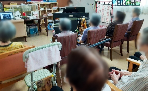 8/30、以前いた利用者様のご家族がピアノを弾いて下さり、みんなで夏らしい歌を歌いました♪