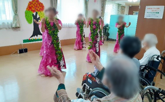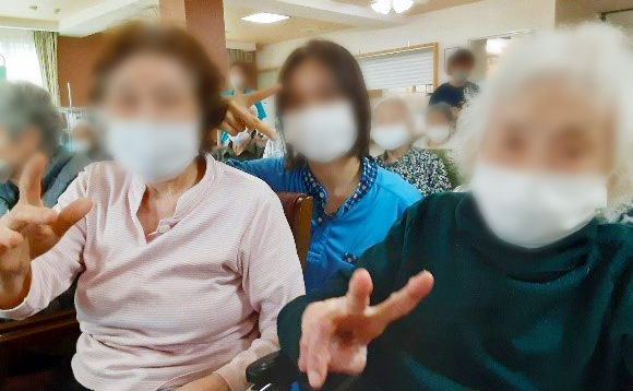 ゆったりした音楽に合わせて、一緒に踊る利用者様が増えてきています