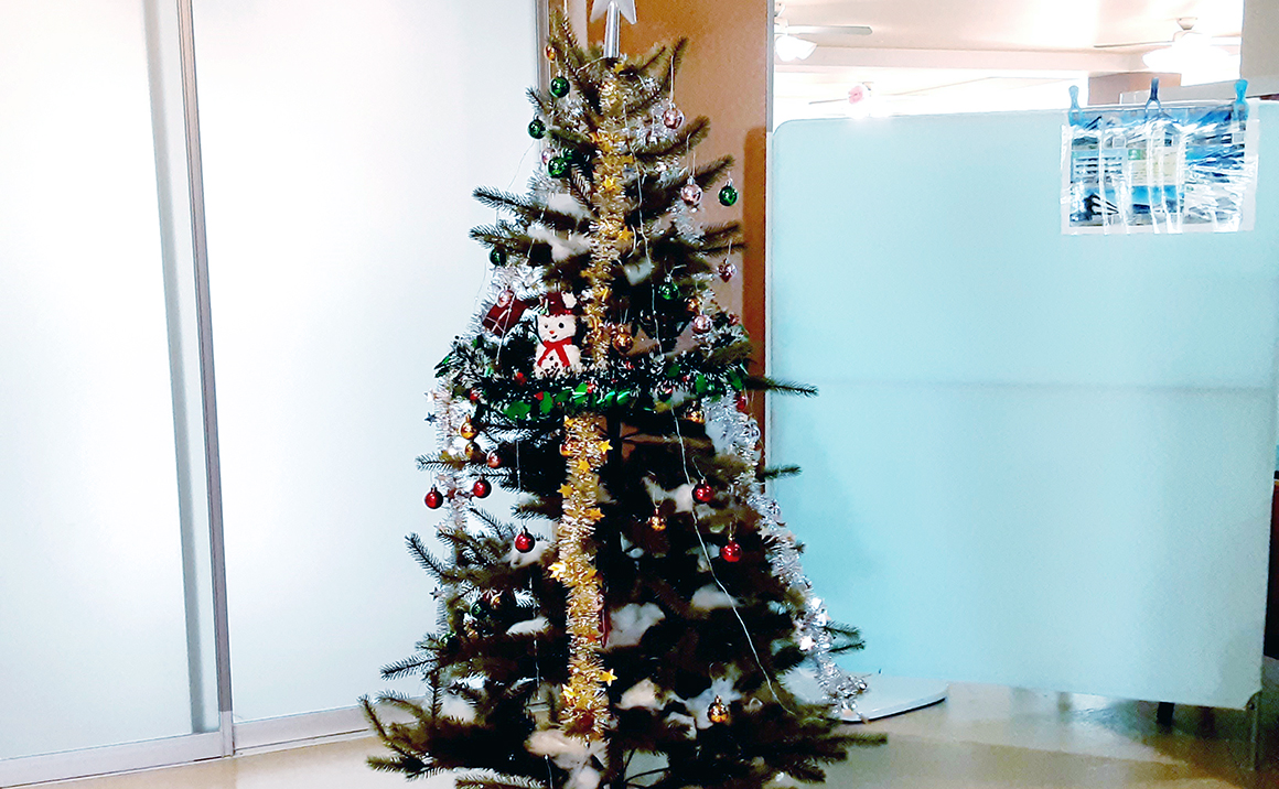 こんにちは! あと1か月もしないでクリスマスですね🌲 施設ではあちこちでクリスマスの飾りつけをしています。 玄関の前にも大きなツリーがあります。 今年もあと1か月かと思うと、早いなあ…と、しみじみしてしまいますね(笑)