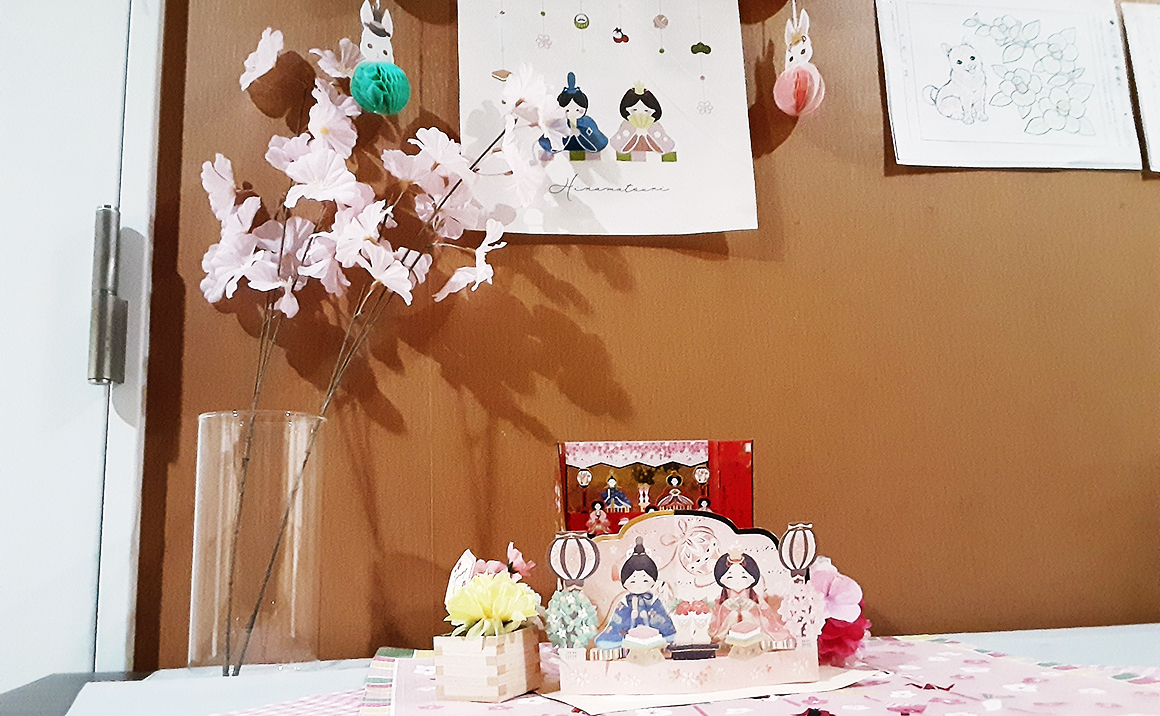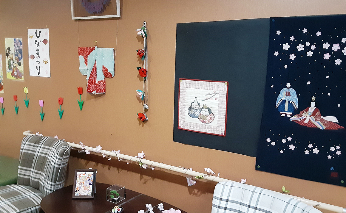 春を感じるレイアウトを職員・利用者様が作ったものを飾らせて頂いています。