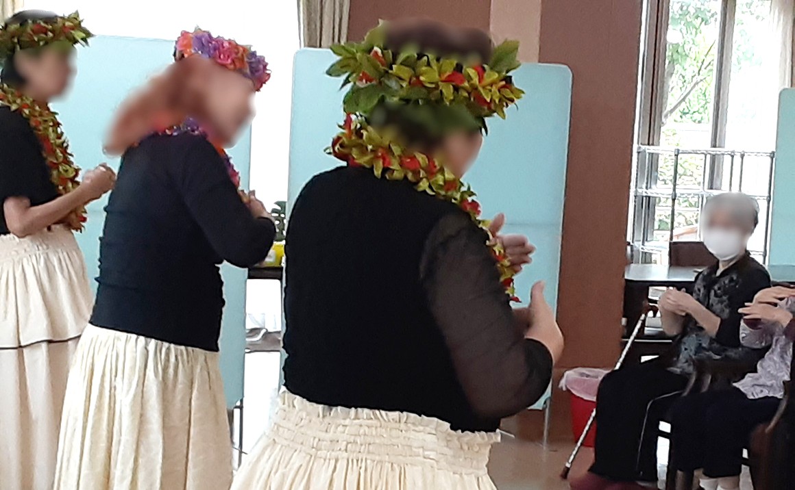 プレザンメゾン習志野実籾にフラダンスボランティアの皆様に来ていただきました。いつもありがとうございます!!