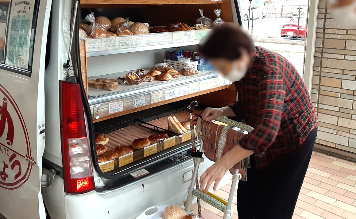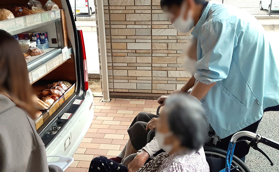 毎週1度来る移動販売のパン屋さんでの様子です。「いつパン屋来るんだっけ?」「今日、パン屋さんだよね?」「今日もいつものアレ買うんだ~」と、 いつも皆さん楽しみにされております♪♪ 季節によって種類も変わるようで、「今回はコレ食べてみようかな!」と選ばれる方も多いです!(^^)! いつも人気のあんパンは早い者勝ち(笑)「今日は買えたから良かった~!!」と、皆さん楽しそうにお買い物しています!