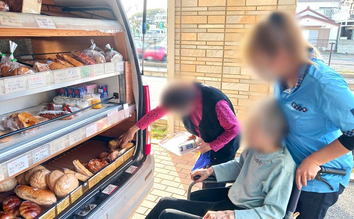 毎週移動販売で来て下さるパン屋さんでの様子です(*^^)v 今回も新商品のパンが色々増えていました!とても美味しそう~♬ 今まで人気だったあんパンは最近皆さん手に取ることなく…お惣菜系のパンが売れていきます(#^^#)