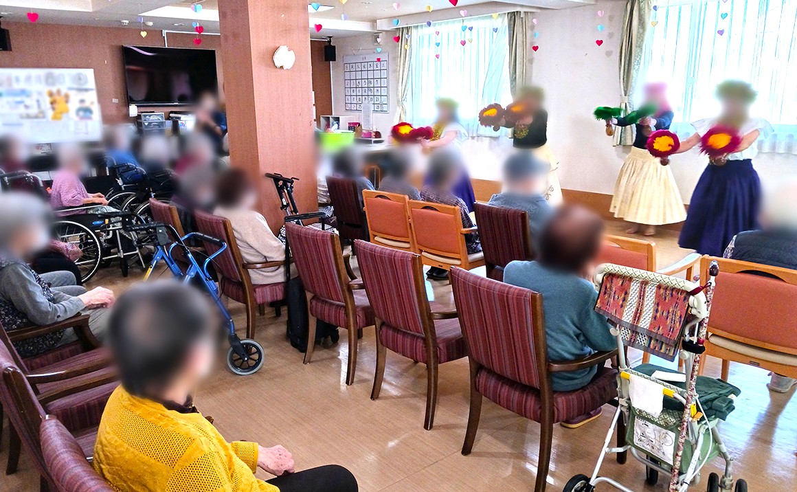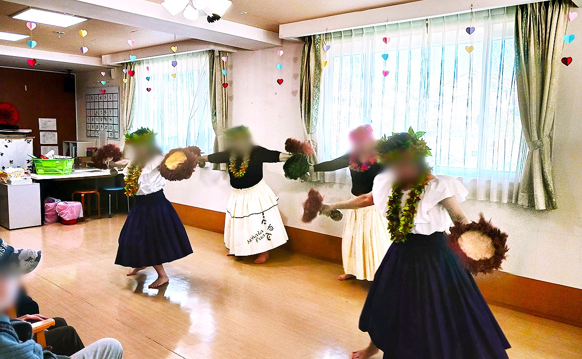 プレザンメゾン習志野実籾に毎月来て下さっている、フラダンスボラの皆さまです~🌼 柔らかい手つきと滑らかな腰つき、見とれてしまいます(#^^#)いつもありがとうございます!! ご利用者の皆様も見よう見まねで踊っていらっしゃいました(*^▽^*)