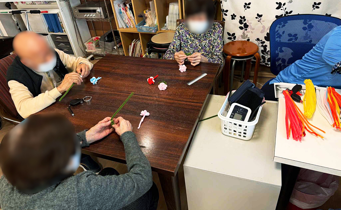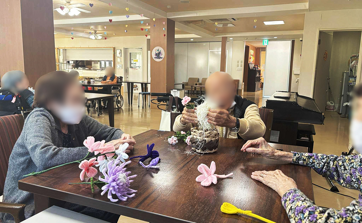 プレザンメゾン習志野実籾のベトナム実習生の特技、モールでお花を作ることが得意なんです。 今回はご利用者と一緒たくさんのお花を作ったみたいです🌸🌸🌸 皆さん、「難しい~」と言いながらキレイに仕上げていらっしゃいました☆彡