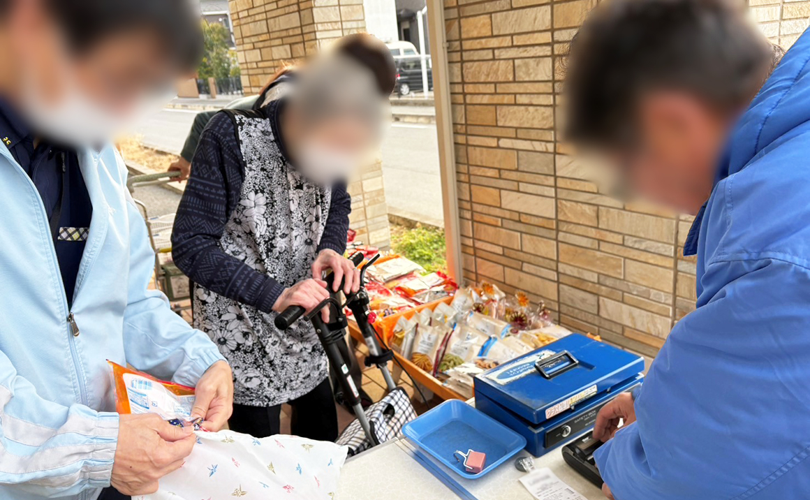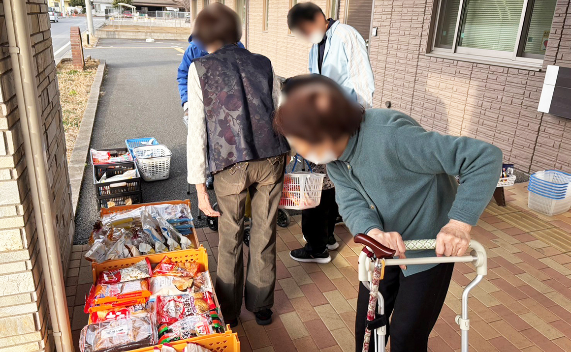 プレザンメゾン習志野実籾の毎月1度のローソン買い物での様子です(*^_^*) 現在、パン屋さんがお休み中ということもあり、「久しぶりに買い物できるー!!」と、とても楽しみに待っていたようです(^^♪ 人気なのは、ミカン・お煎餅・チョコレートです( *´艸`)