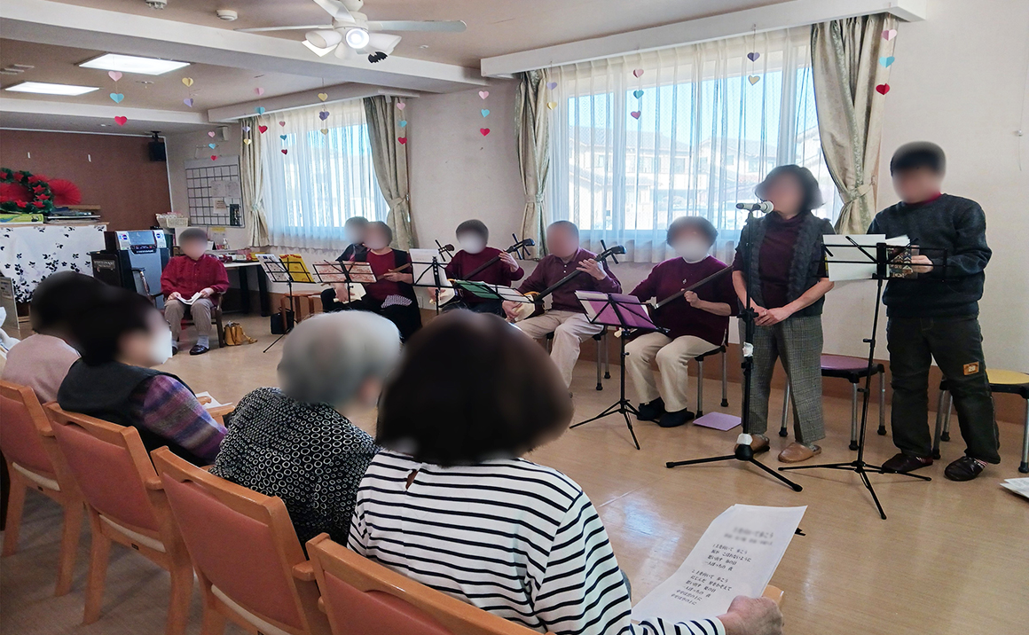 プレザンメゾン習志野実籾の恒例の民謡ボランティアの皆様に来ていただきました!!(*^。^*) 中学生の男の子の民謡、惚れ惚れ聞き入ってしまいました( ゚Д゚) ご利用者の皆さんもとても楽しく過ごされ、一緒に歌ったり聞いたりしてご満足された様子でした☆彡
