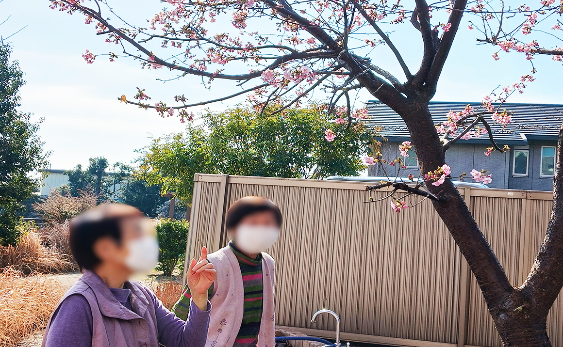 プレザンメゾン習志野実籾のご利用者が何年も前に植えた桜です🌸 とても大きく育ちました!!そしてもう開花!!皆さんとても喜ばれておりました(*^-^*) 今日はとっても暖かかったので、みんなでひなたぼっこ☀