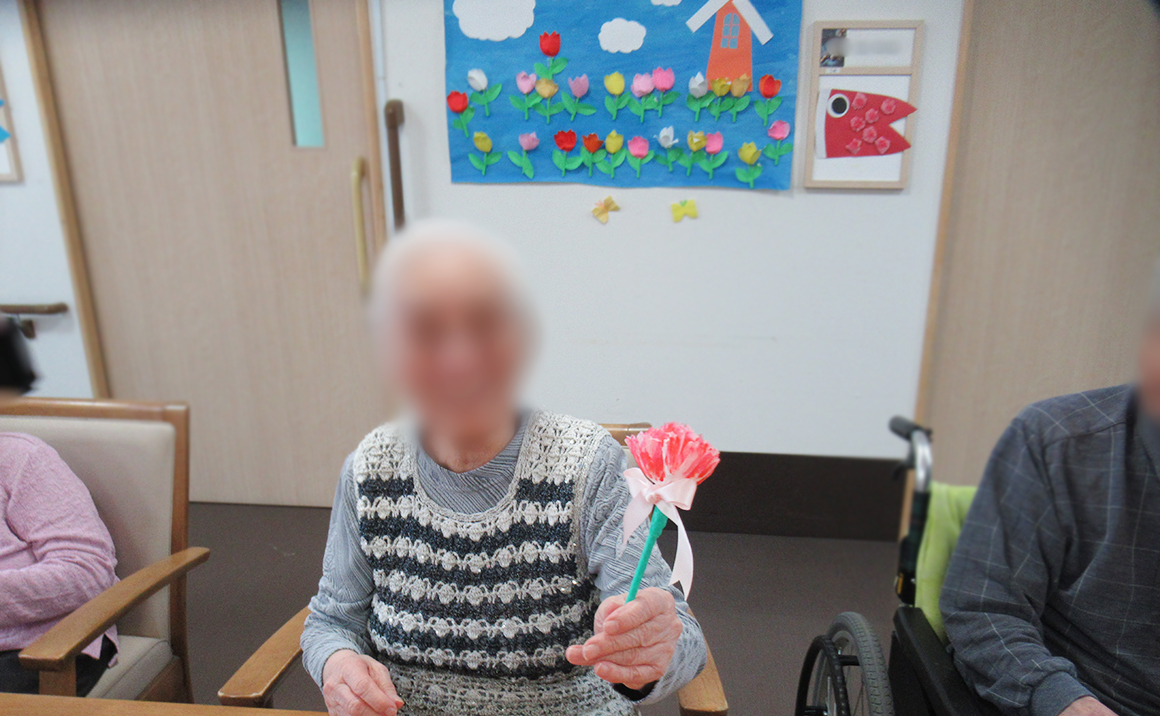 広島市のグループホームたのしい家祇園山本です。 5月11日に母の日のイベントを開催しました。 おやつに特大サイズのプリンを作り食べていただきました。皆さまプリンの大きさに驚かれ笑われていました。 おやつ後には、日々の感謝をお伝えし手作りのカーネーションをプレゼントしました。 カーネーションを綺麗だと言われ喜ばれていました。 これからもたのしい家祇園山本から情報を発信してまいります。ぜひご覧ください。