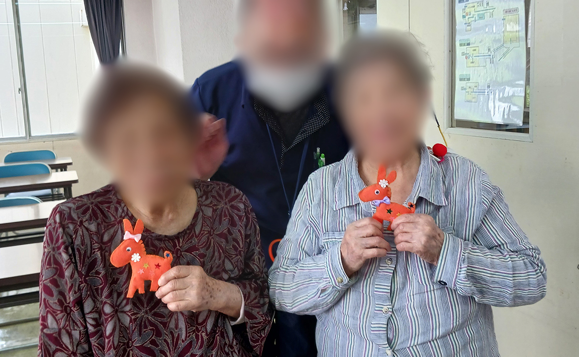 今日は守口市庭窪コミュニティセンターへボランティアに参加してきました。 認知サポ-タ-研修時に配られるロバ隊長のマスコットを作りました。 普段からたのしい家佐太中町施設内で雑巾を縫っていただいているので、マスコット作りに挑戦されました。 小さいマスコットの為苦戦しましたが時間内に作り上げることができました。