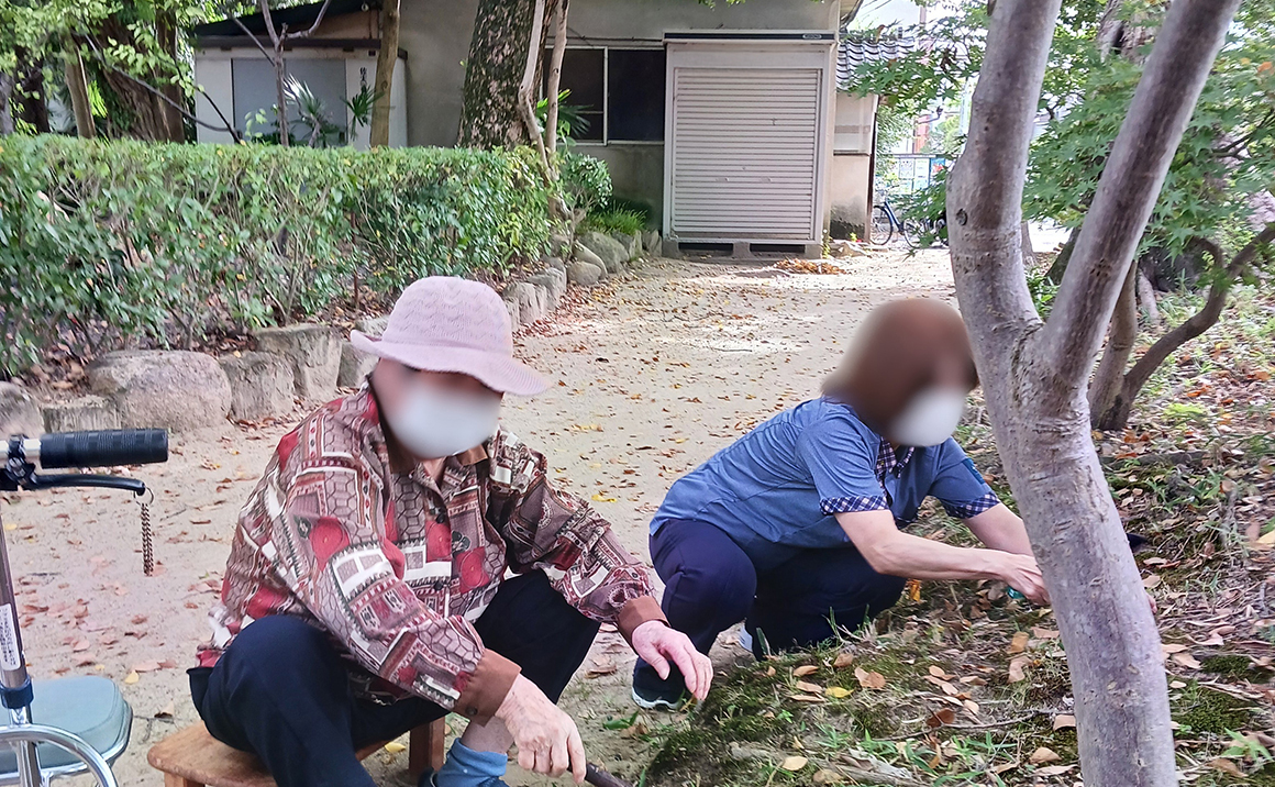たのしい家佐太中町近くにの由緒ある佐太天神宮で入居者様の方々と一緒に清掃活動に参加しました。