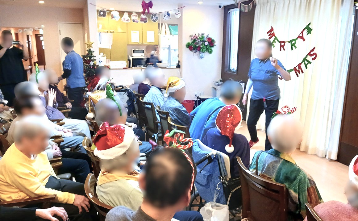 本格的なマジックショーの前のゲームに入居者様とご家族様が大盛り上がり^^