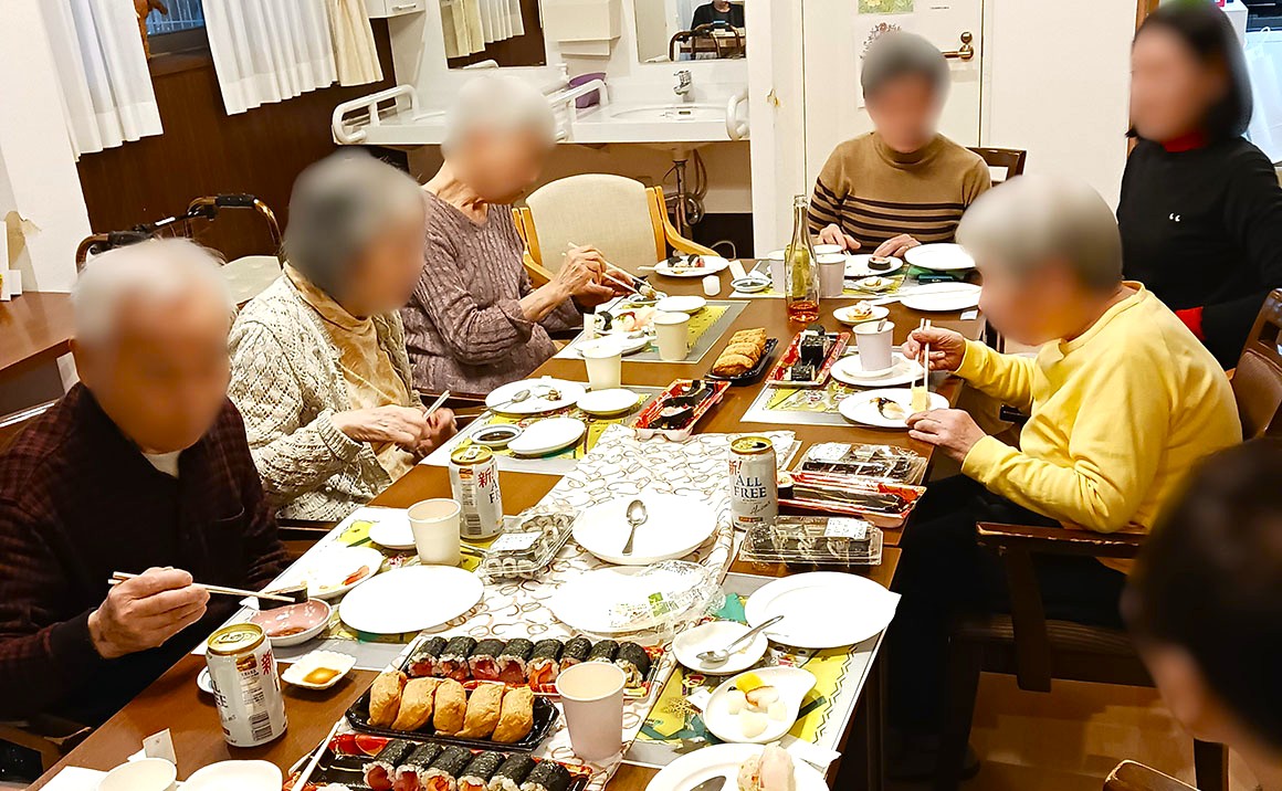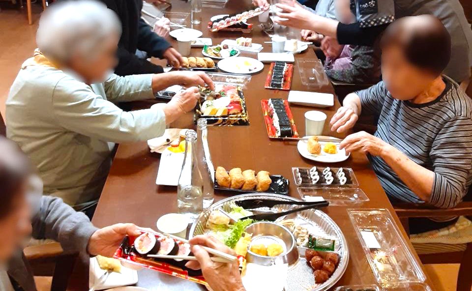 たのしい家上野毛はクリスマス会にマジックショー後各階にてバイキング形式の食事を準備しました。 ご家族様も参加してクリスマス歌を流してゆっくりと食事と談話をしながら楽しい時間を過ごせました。 入居者様とご家族様の素敵な絵顔が見られるたのしいクリスマス会でした。