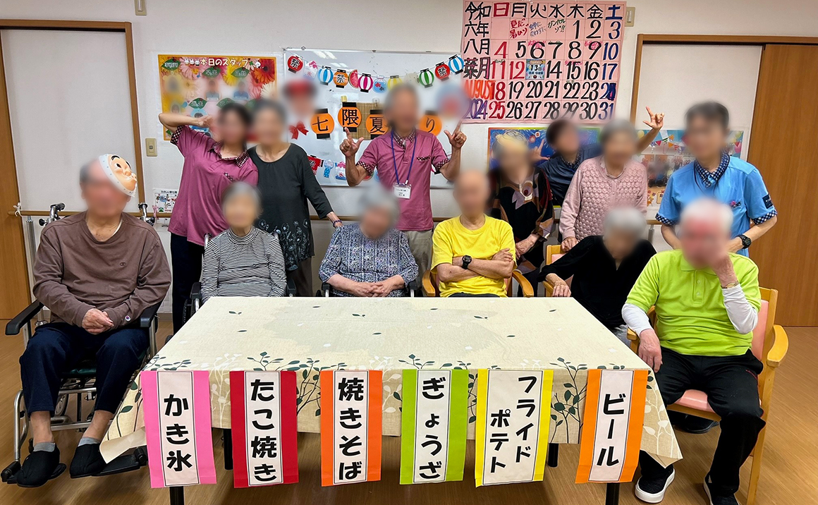 こんにちは、たのしい家七隈の管理者水町です。 今日はご入居者様のご希望があった、夏祭りを開催しました! 焼きそばを作り、たこ焼きを作り、かき氷を作り。。。 夏祭りと言えば?で考えついた事を楽しんでみました。 どうですか?この素敵な笑顔! 月末は夕方から皆さんで花火大会を行う予定です。 皆さんに楽しい思い出を作っていただけるよう色々と企画しております。 お気軽に覗いて見てください。