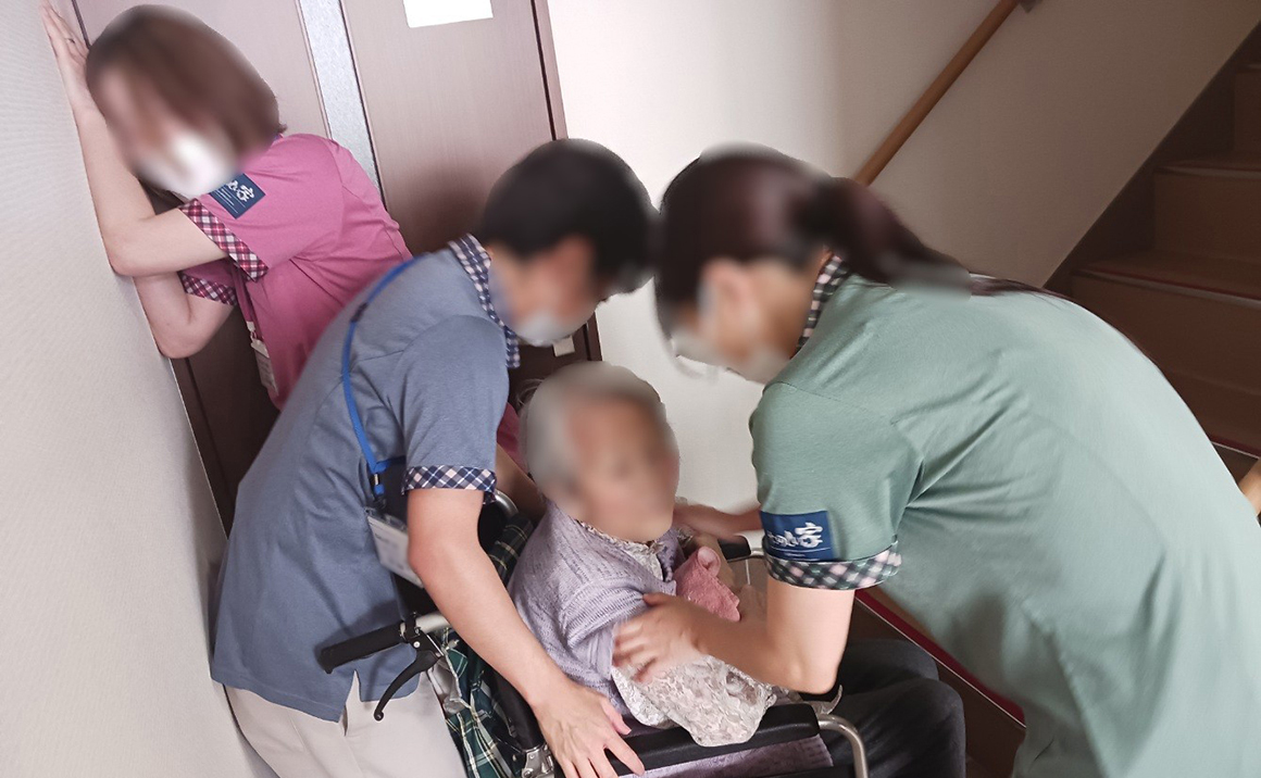 車椅子のご利用者様を3人で1階まで運ぶのはとても大変でした。